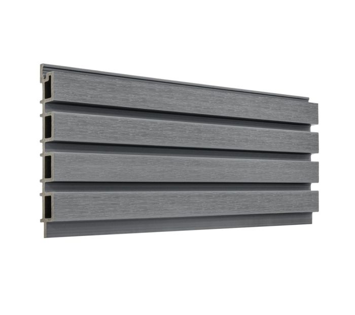 Cladco slatted wall cladding panels feature a modern four-slat design and are manufactured from lightweight yet durable, low-maintenance capped composite material. Offering the appearance of contemporary timber cladding without the upkeep, these panels are an ideal choice for enhancing external walls, whether installed vertically or horizontally.