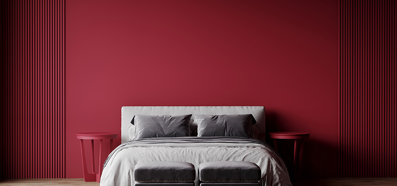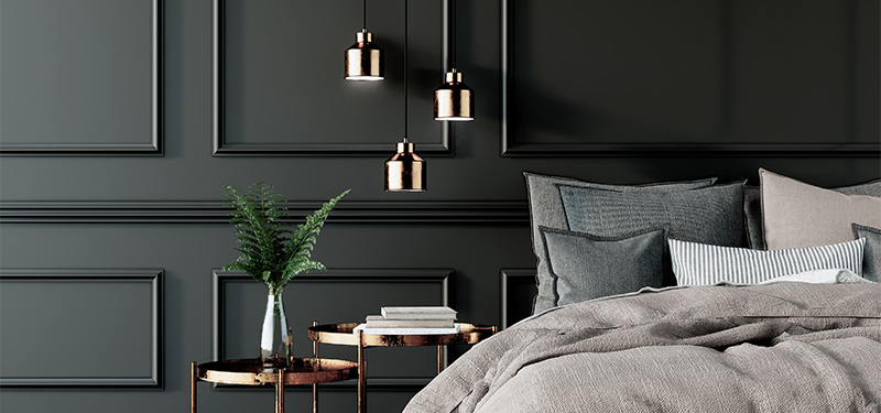 If you wish to be experimental, colour blocking with brighter paint or wallpaper can add colour to your bedroom walls. Feel brave? A dark shade can add depth and drama to the walls and can complement dark wood grains. Contrast is something to consider when using stronger colours, especially in bedrooms. It can be used to centre the focus of the room, which helps to give it structure as well as adding depth.