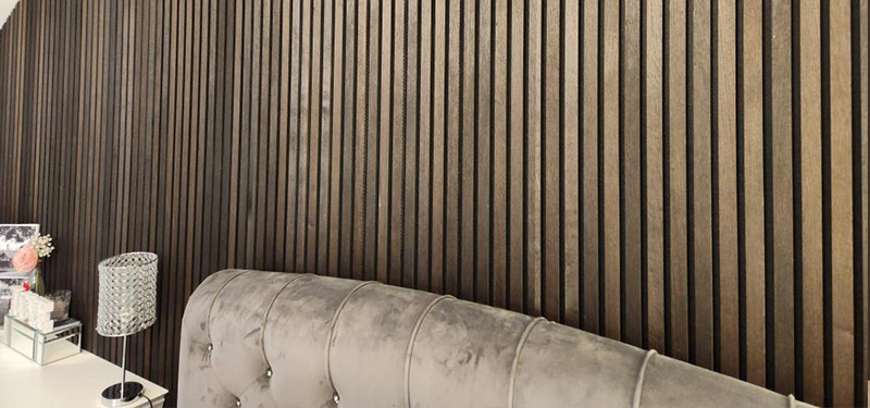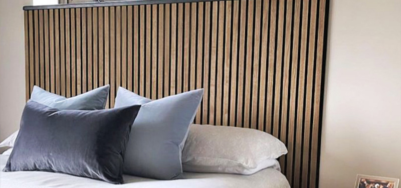Adding a splash of colour to your bedroom is easy with a statement headboard. Need ideas? Take inspiration from one of our customers, who created a statement headboard beneath the window that incorporates a natural wood feel using Cladco slatted wall panels in antique oak.