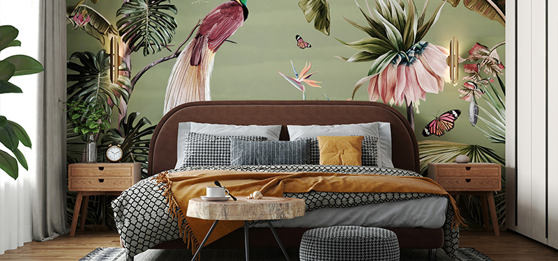 This may make the room seem crowded if the bedroom already feels cramped. Instead, try a single feature wall that runs from floor to ceiling to make a statement or act as wallpaper in your bedroom.
