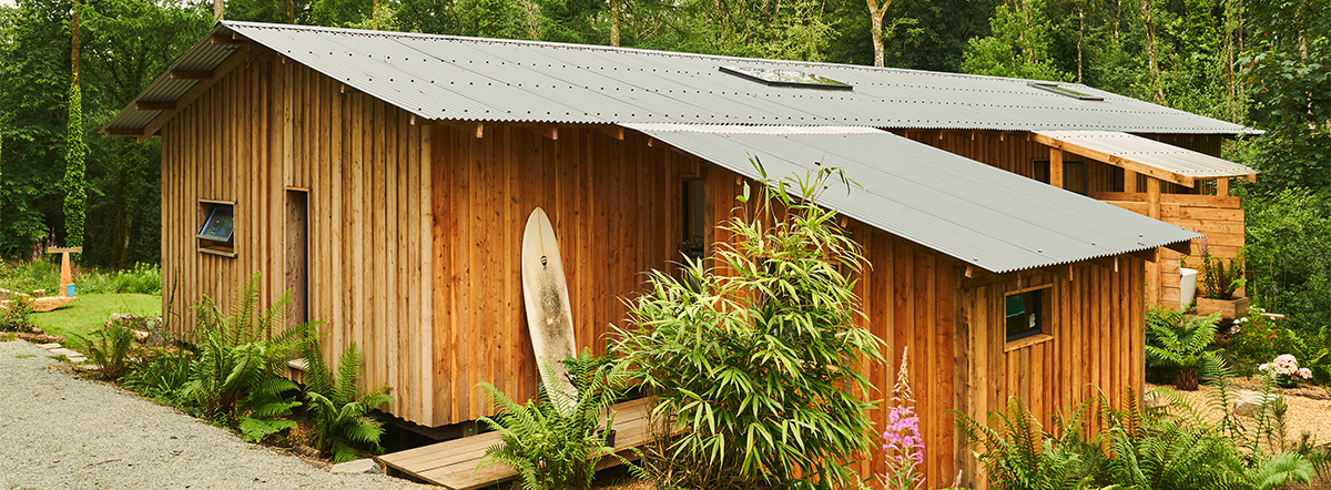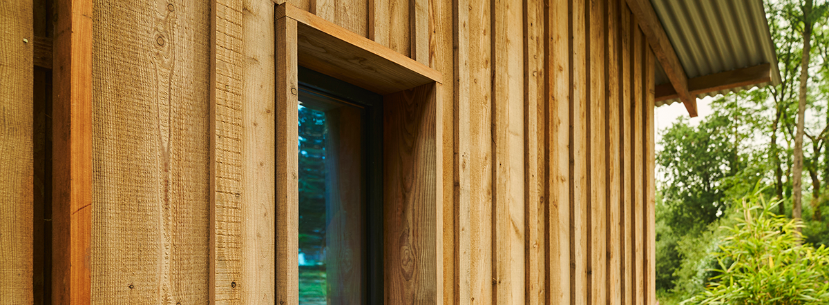 The anthracite finish provides a sleek contrast to the warm-toned timber cladding as well as the rich greens of the surrounding environment, while the corrugated style provides a traditionally agricultural feel to the build.