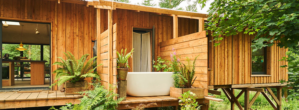 As well as skylights on the main structure of the house, corrugated rooflight sheets have been incorporated into the parts of the design to provide natural light, most notably above the outside bath! This ingenious addition creates a space where someone can experience the outdoors, while remaining protected from rain or debris, blurring the boundary between indoor comfort and outdoor living.