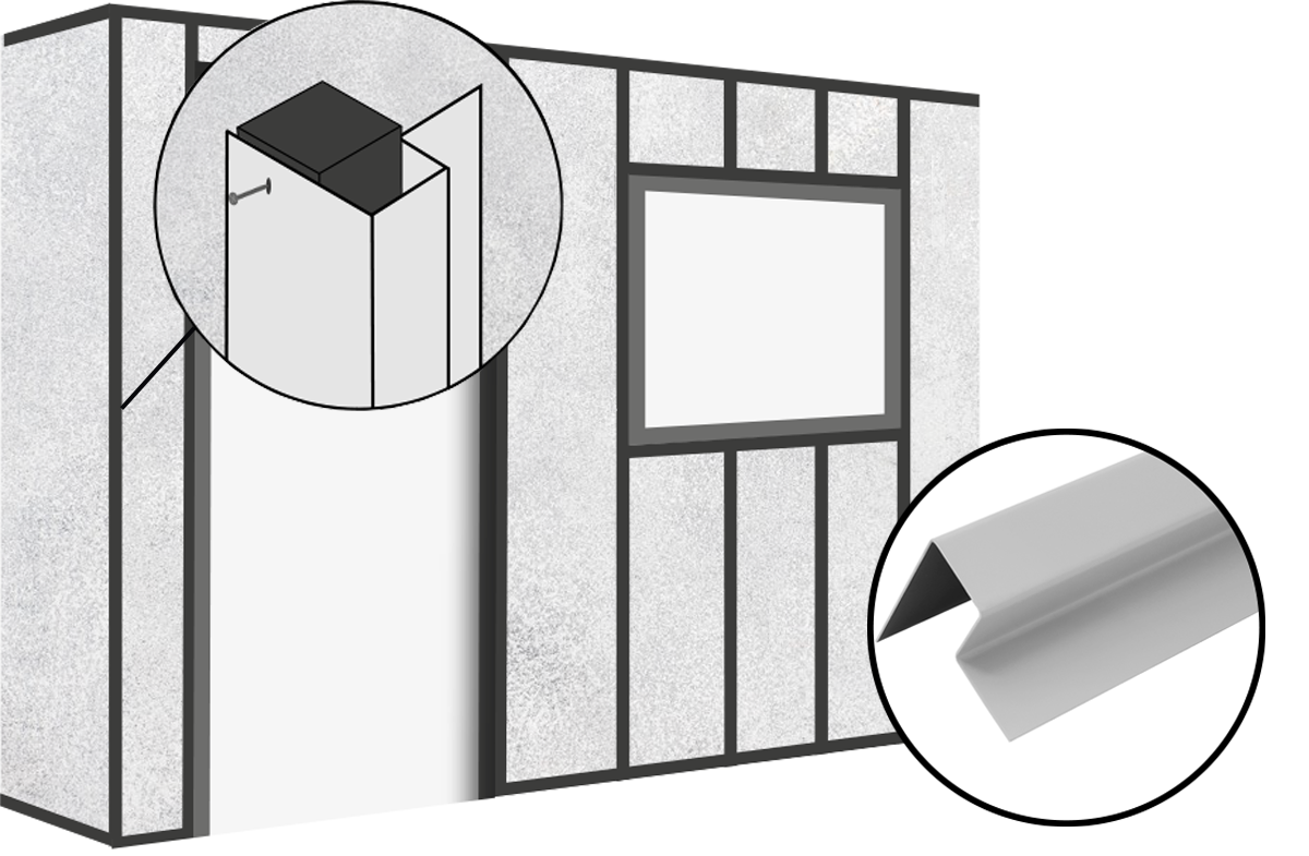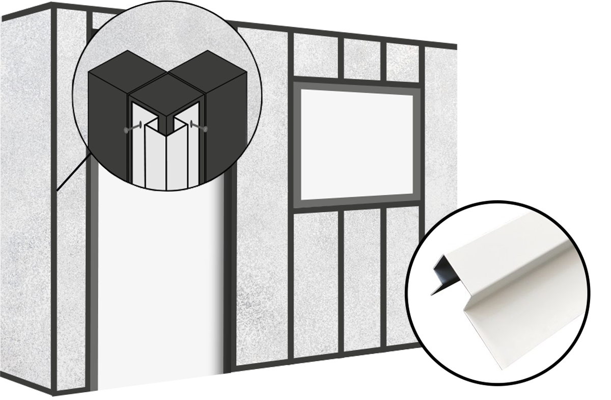 Once installed correctly the wall cladding boards can be fitted onto the asymmetric external corner trims. Secure the cut-to-size boards using 39mm Screws.
