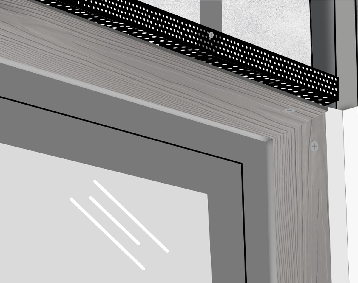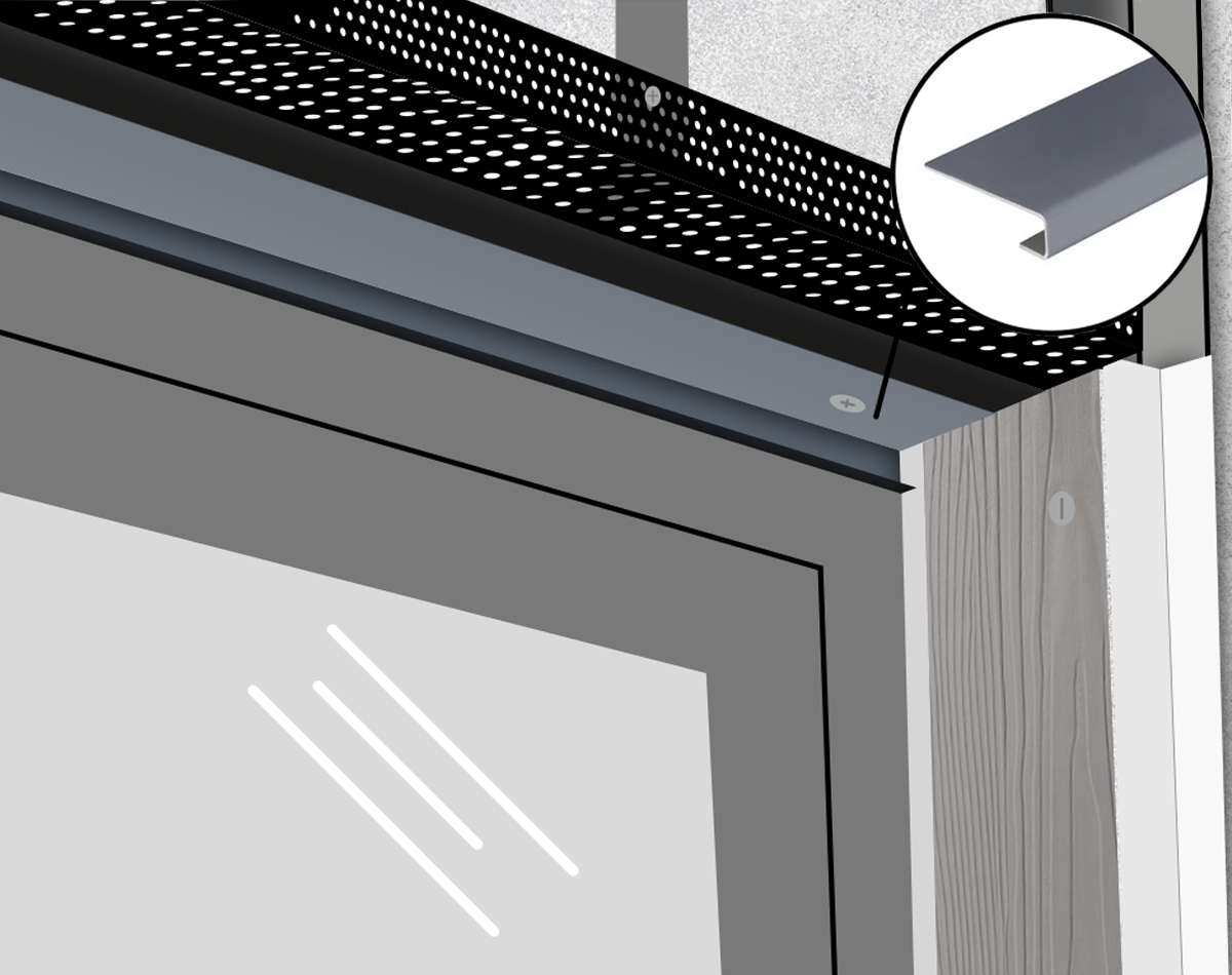 Measure a connection profile trim to fit the top internal corner of a window or door head. Cut the connection profile trim using Cladco straight cut tin snips and secure into place using 39mm screws. This will provide adequate support for the overhanging fibre cement lap board under the window or door head.