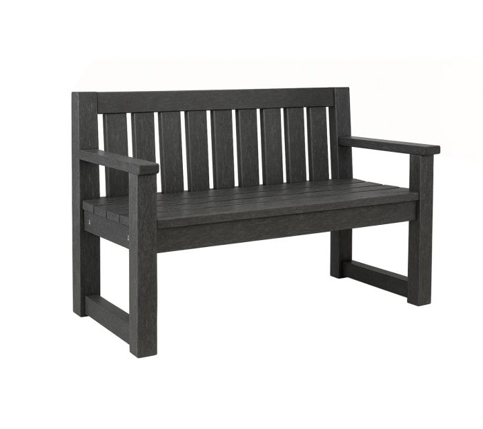Comfortable and practical, this recycled plastic bench with arms and a vertical back is made from an innovative, sustainable material created in the UK from 100% recycled plastic. Weatherproof, vandal-proof and maintenance-free, it’s the perfect park bench and provides long-lasting seating for gardens and community spaces without the upkeep of traditional timber.